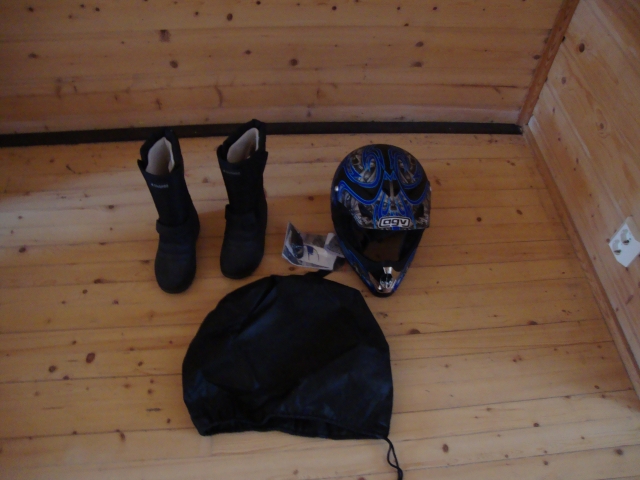 Kelkka saappaat (irrotettava sisävuori) koko 33-36 ja kypärä AGV RC-5 Pro sekä säilytys huppu, käyttämättömät