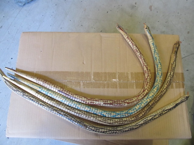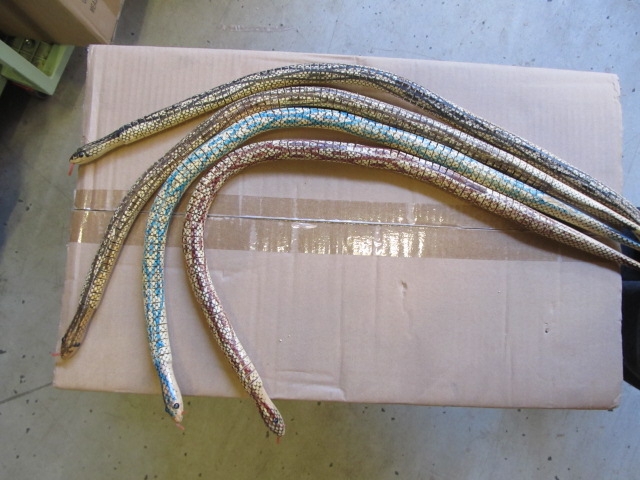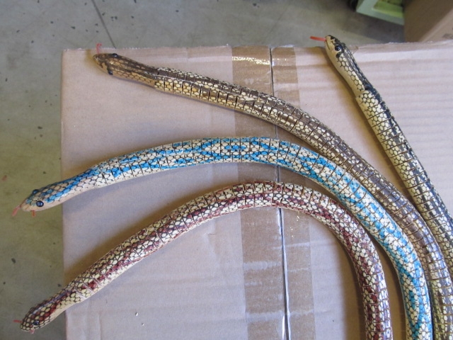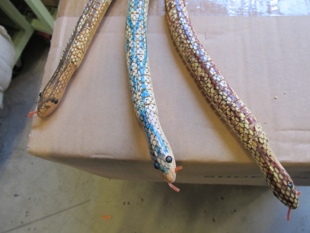 Lelukäärme, puinen ja taipuisa, eri värejä, n. 1000 kpl