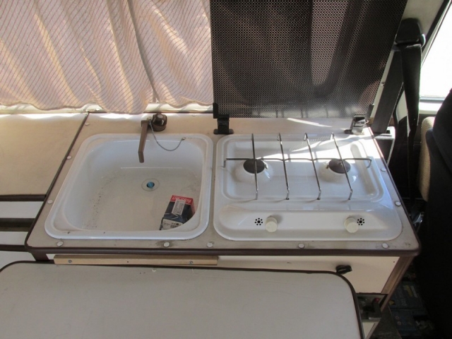 Hella, jääkaappi, lämmityslaite, pöytä ja tiskipöytä, alkuperäinen 3 kg kaasupullo on varastettu, mutta mukaan saatoisen.