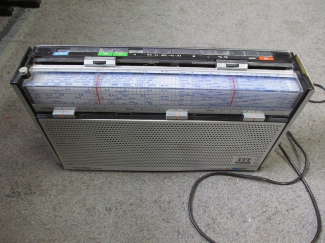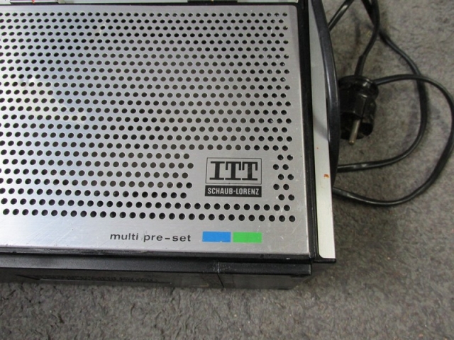 This beast of a radio was built in West Germany by ITT Schaub-Lorenz in the mid 1970's. This set is the "Studio" version of the model 104, there was also a "Touring" version which had a wood grain plastic front instead of the metal one this set has (which I think looks better)