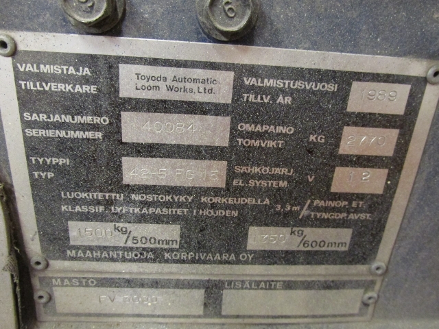 Kuvan mukainen nestekaasulla käyvä trukki Toyota FG 15 vm -89