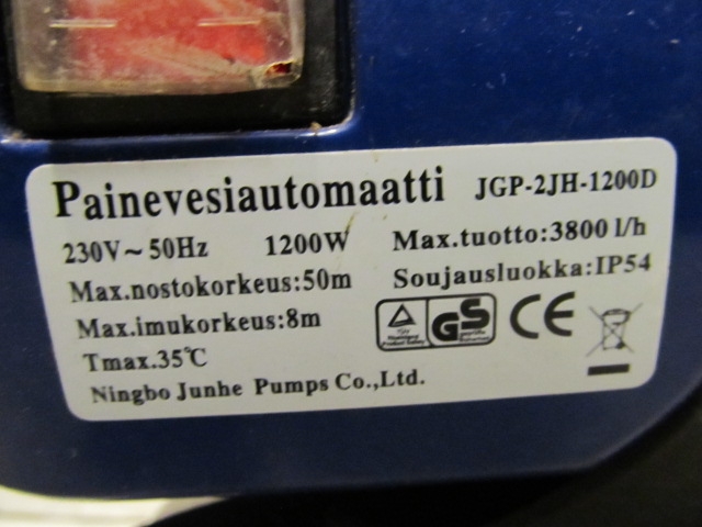 Painevesiautomaatti, JGP-2JH-1200D, käytetty, 1 kpl