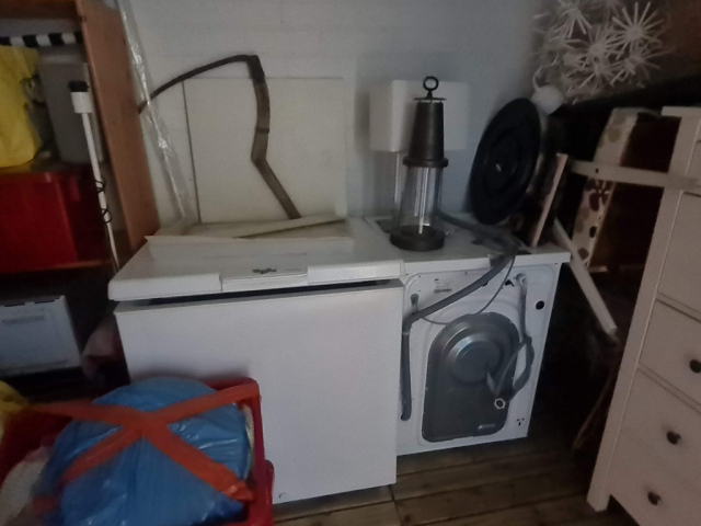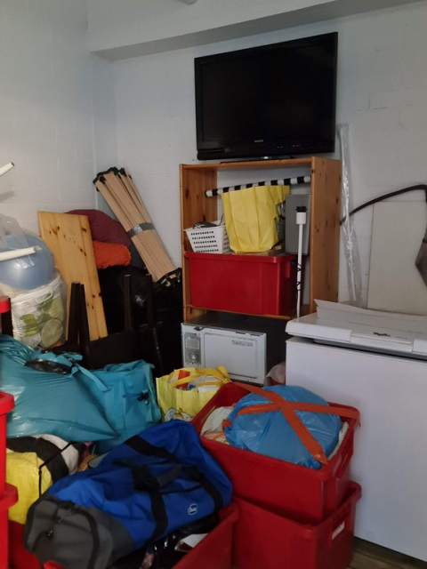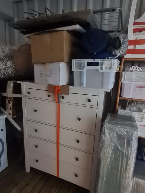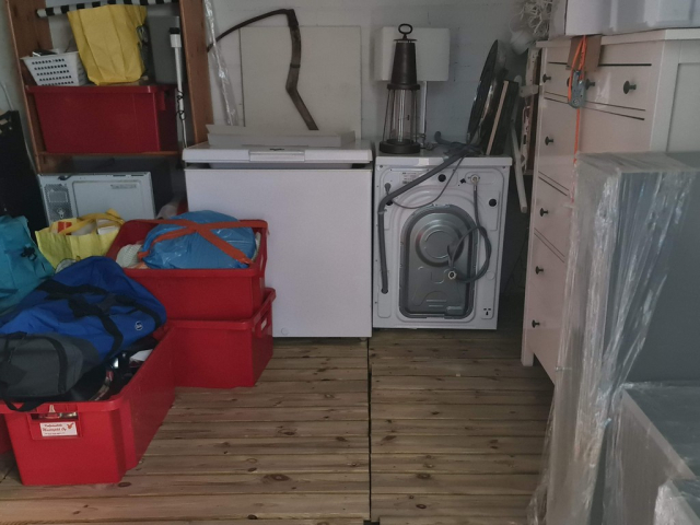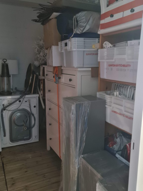 Myydään huutokaupalla kuvassa näkyvän varaston sisältö, vuokranantajan / haltijan lukuun.