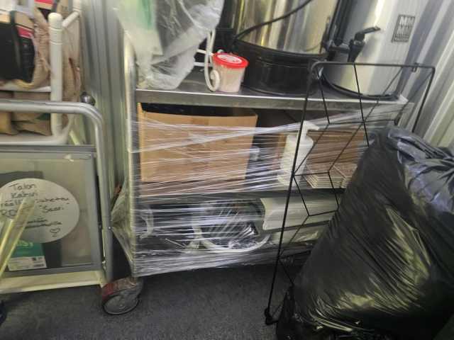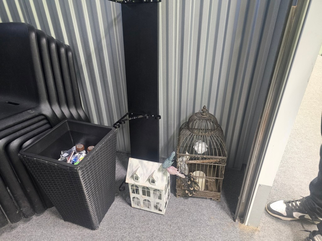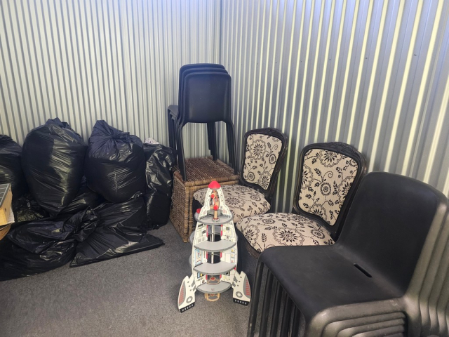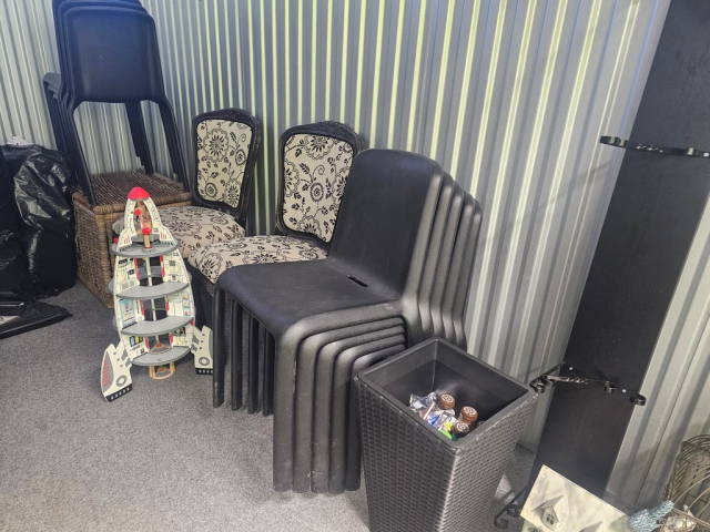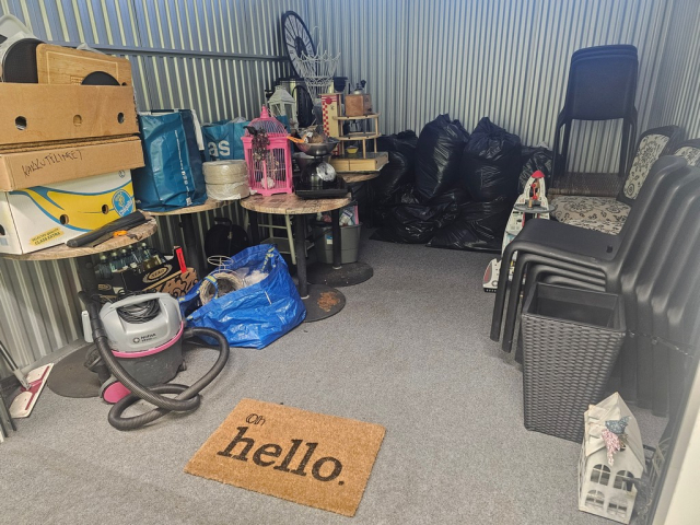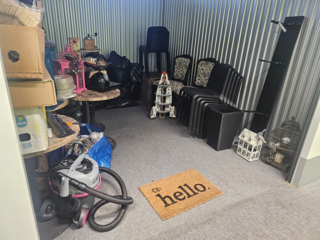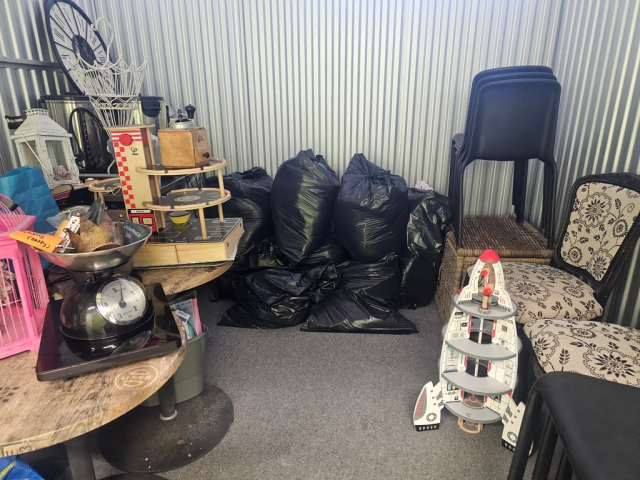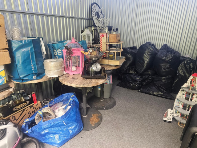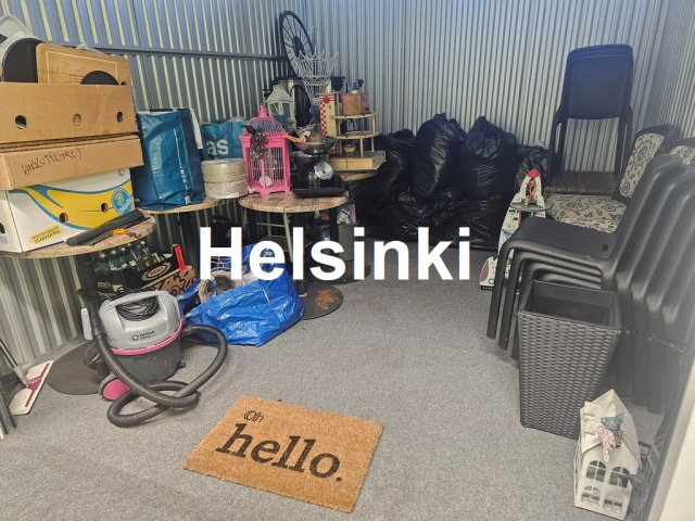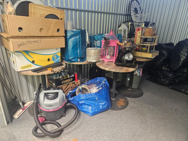 Myydään huutokaupalla kuvassa näkyvän varaston sisältö, vuokranantajan / haltijan lukuun.