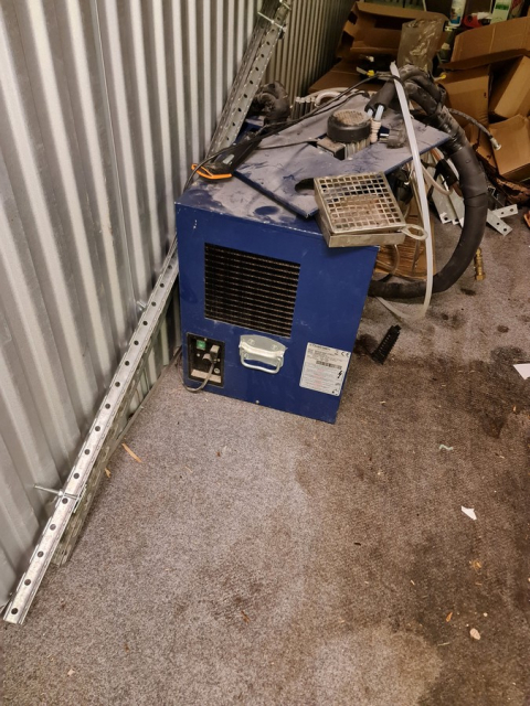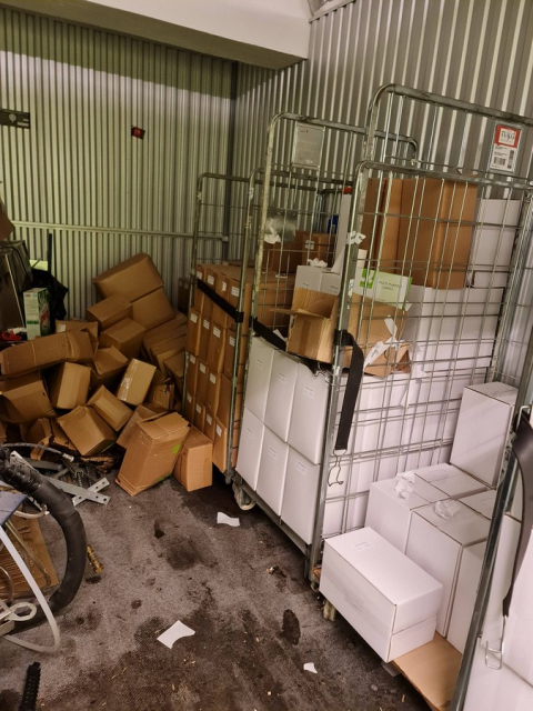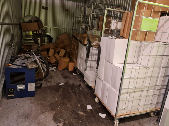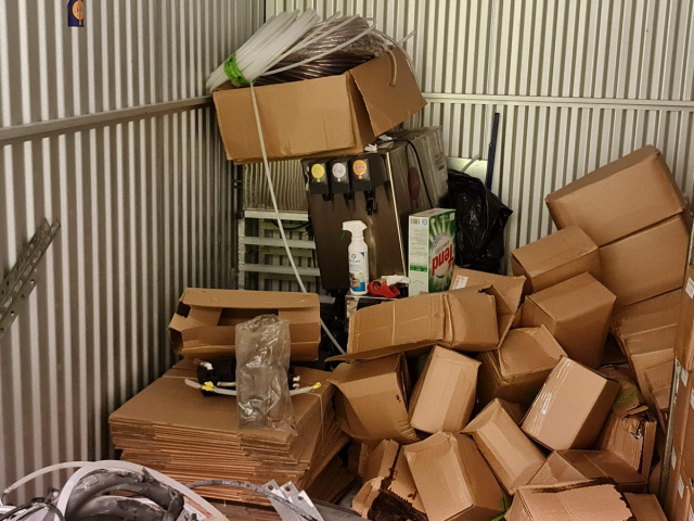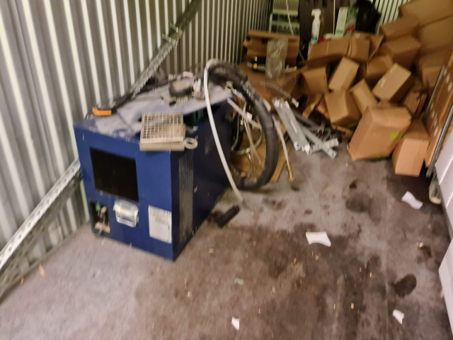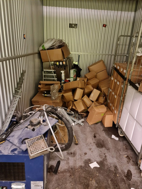 Myydään huutokaupalla kuvassa näkyvän varaston sisältö, vuokranantajan / haltijan lukuun.
