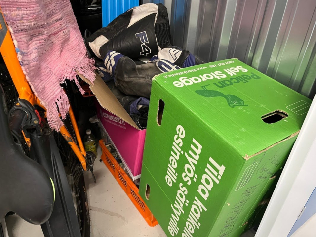 Myydään huutokaupalla kuvassa näkyvän varaston sisältö, vuokranantajan / haltijan lukuun.