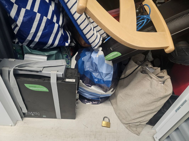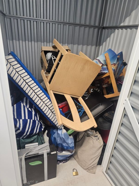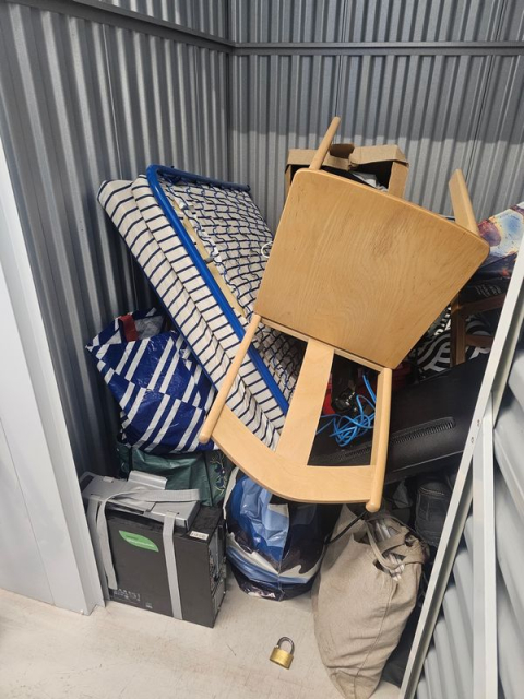 Myydään huutokaupalla kuvassa näkyvän varaston sisältö, vuokranantajan / haltijan lukuun.