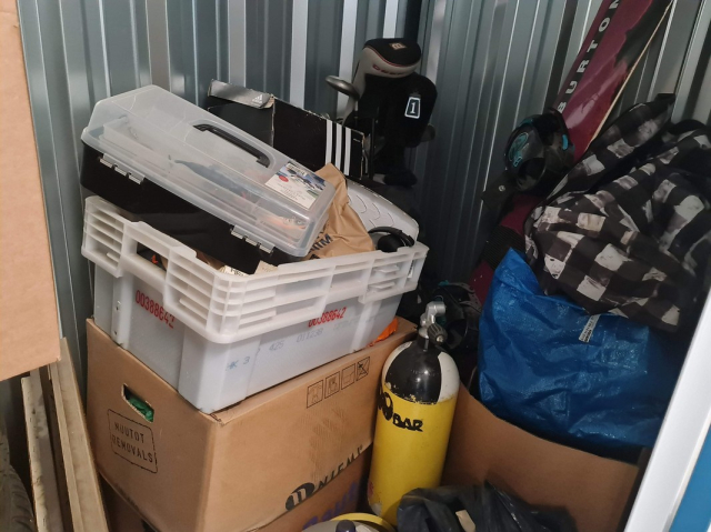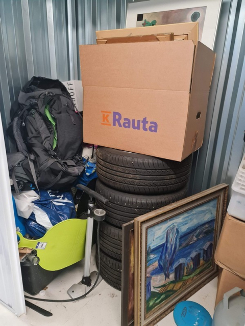 Myydään huutokaupalla kuvassa näkyvän varaston sisältö, vuokranantajan / haltijan lukuun.