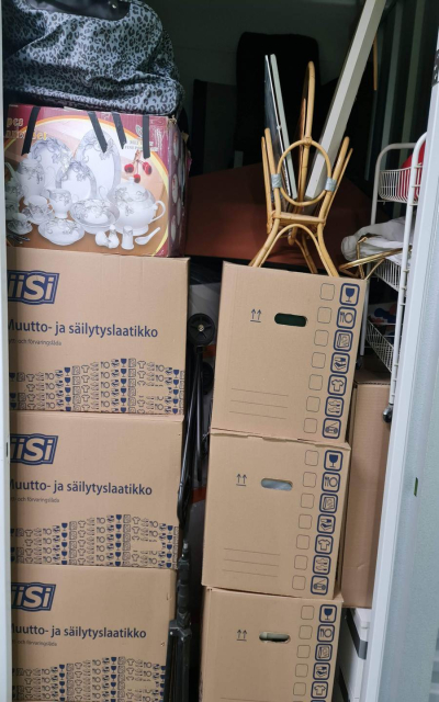 Myydään huutokaupalla kuvassa näkyvän varaston sisältö, vuokranantajan / haltijan lukuun.