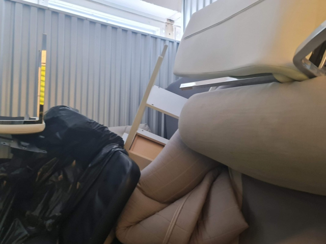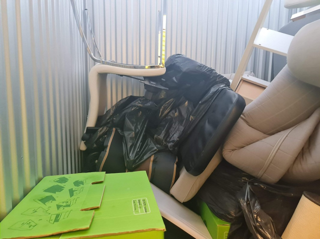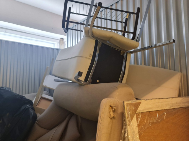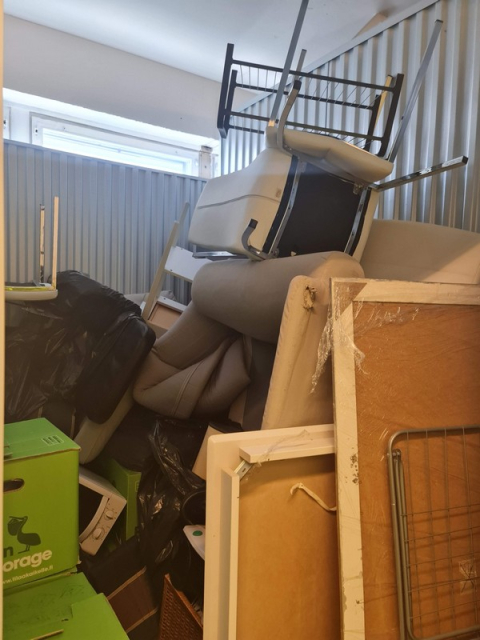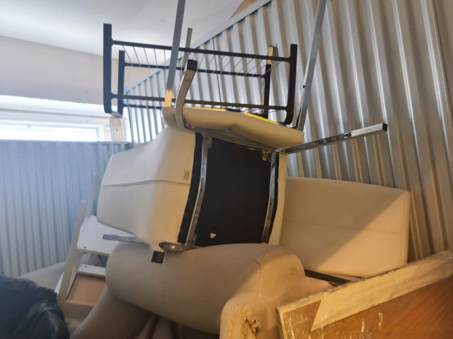 Myydään huutokaupalla kuvassa näkyvän varaston sisältö, vuokranantajan / haltijan lukuun.