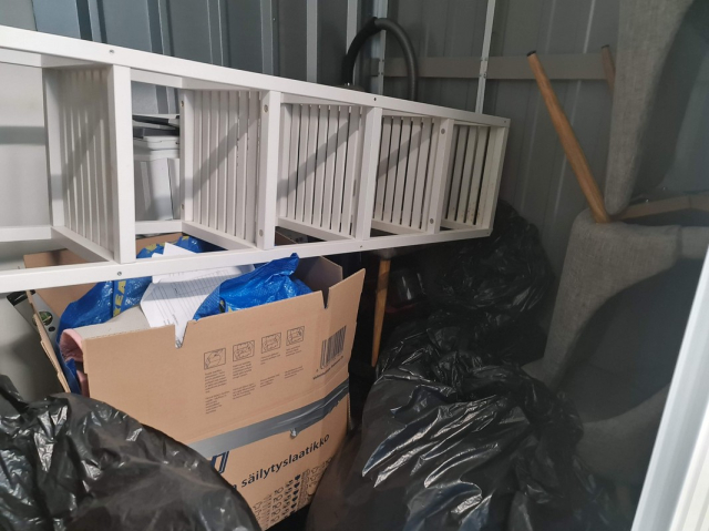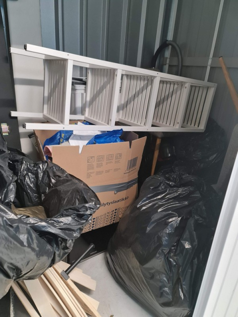 Myydään huutokaupalla kuvassa näkyvän varaston sisältö, vuokranantajan / haltijan lukuun.