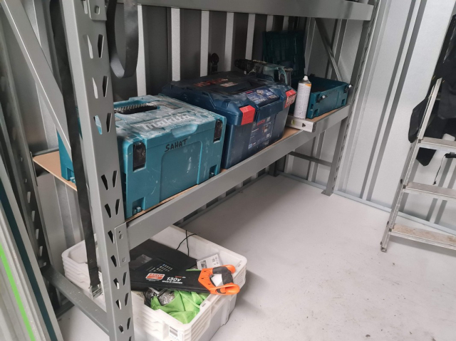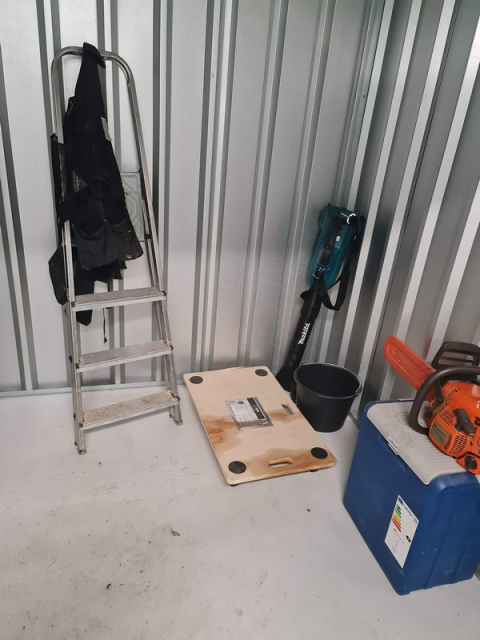 Myydään huutokaupalla kuvassa näkyvän varaston sisältö, vuokranantajan / haltijan lukuun.