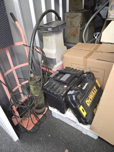 Myydään huutokaupalla kuvassa näkyvän varaston sisältö, vuokranantajan / haltijan lukuun.
