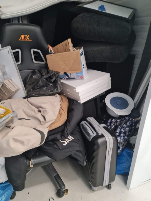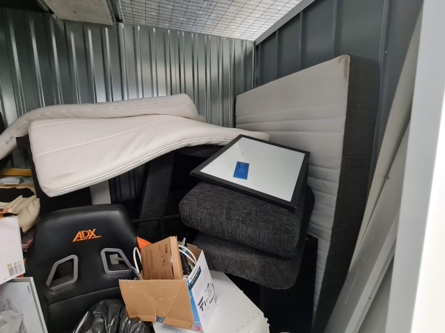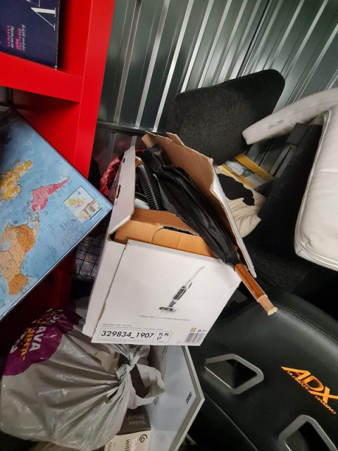Myydään huutokaupalla kuvassa näkyvän varaston sisältö, vuokranantajan / haltijan lukuun.