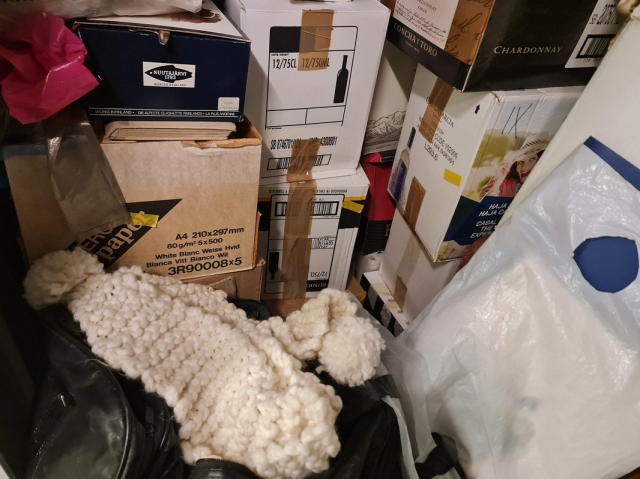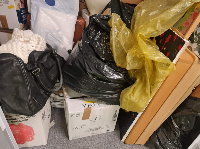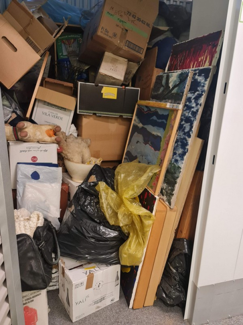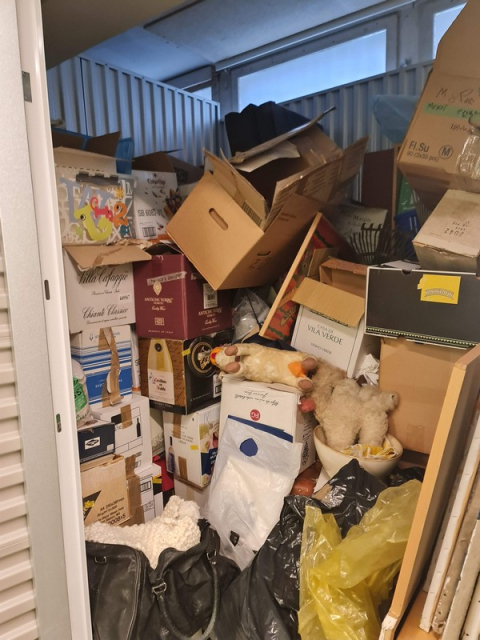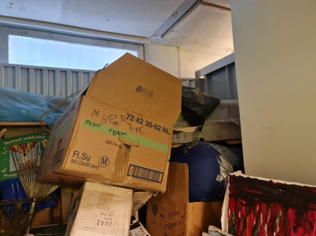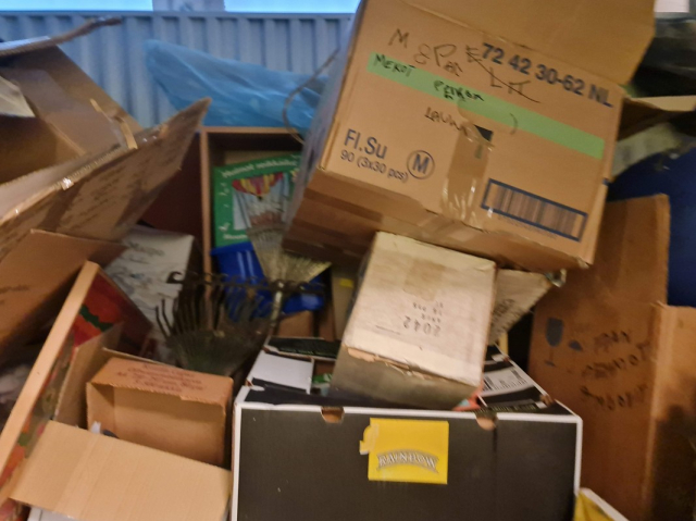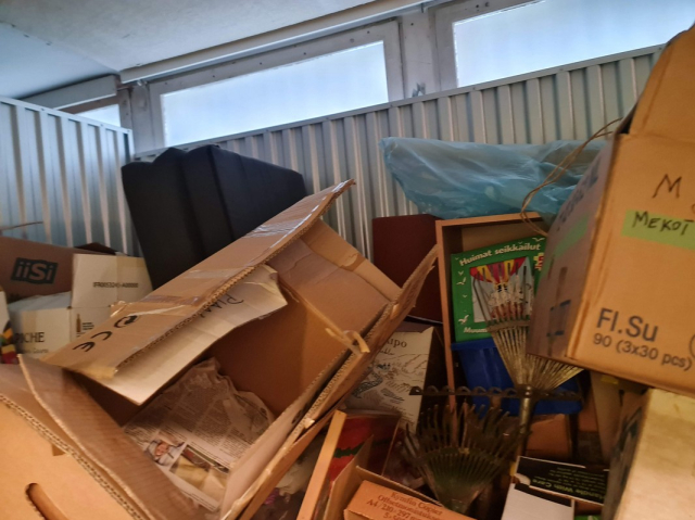 Myydään huutokaupalla kuvassa näkyvän varaston sisältö, vuokranantajan / haltijan lukuun.
