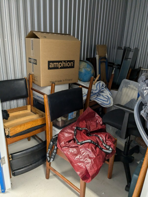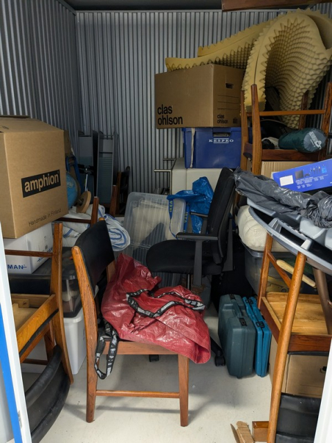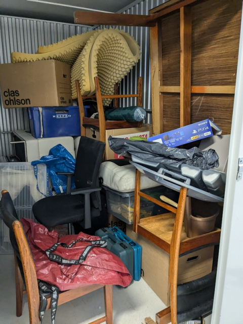 Myydään huutokaupalla kuvassa näkyvän varaston sisältö, vuokranantajan / haltijan lukuun.