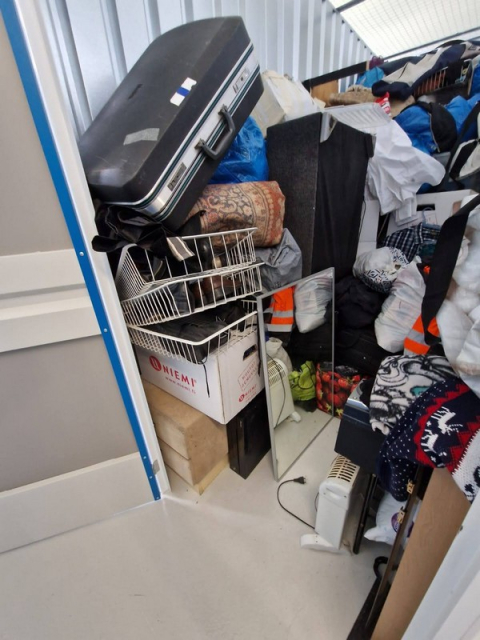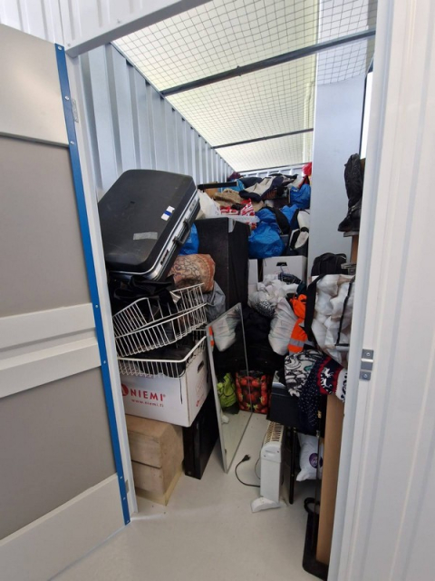 Myydään huutokaupalla kuvassa näkyvän varaston sisältö, vuokranantajan / haltijan lukuun.