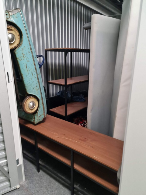 Myydään huutokaupalla kuvassa näkyvän varaston sisältö, vuokranantajan / haltijan lukuun.