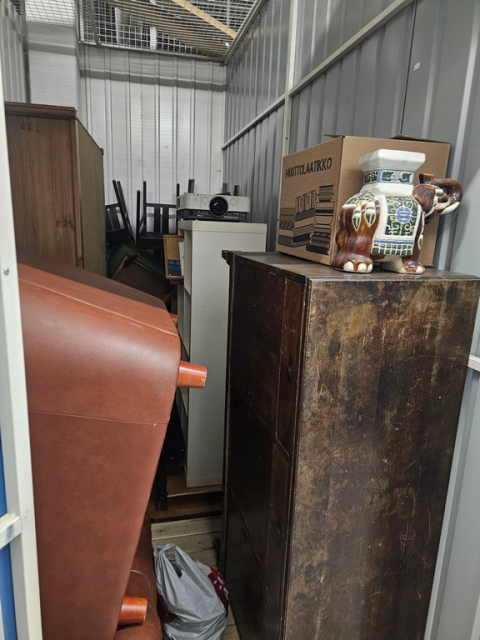 Myydään huutokaupalla kuvassa näkyvän varaston sisältö, vuokranantajan / haltijan lukuun.