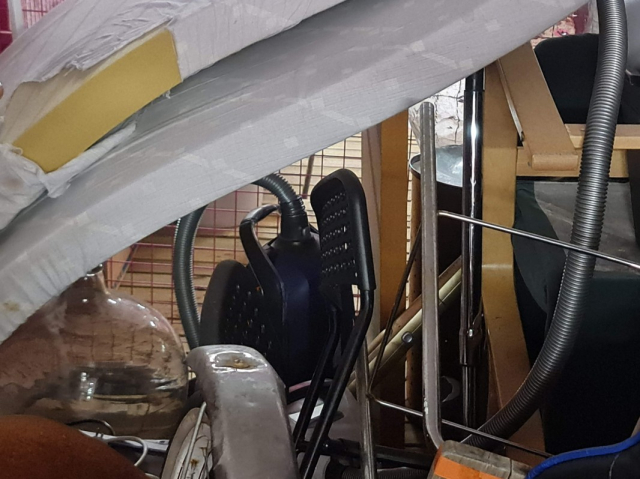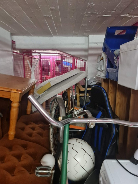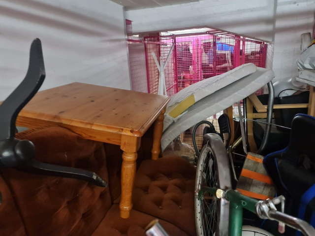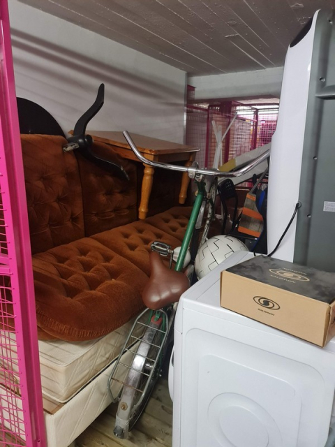 Myydään huutokaupalla kuvassa näkyvän varaston sisältö, vuokranantajan / haltijan lukuun.