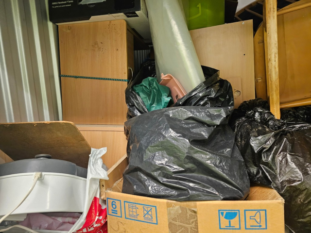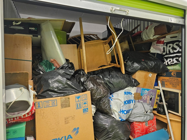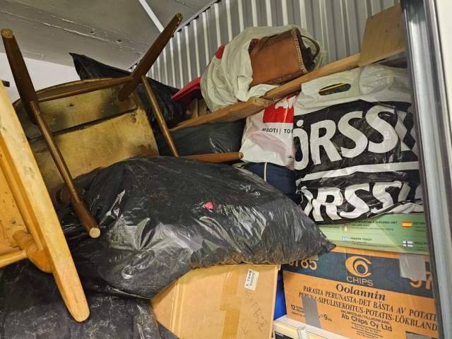 Myydään huutokaupalla kuvassa näkyvän varaston sisältö, vuokranantajan / haltijan lukuun.