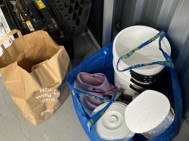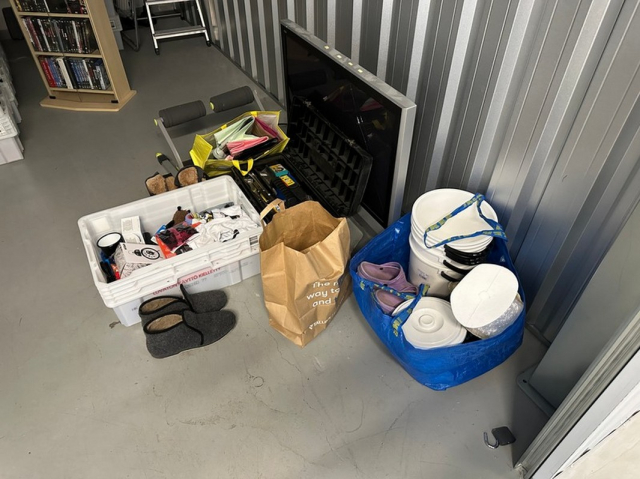 Myydään huutokaupalla kuvassa näkyvän varaston sisältö, vuokranantajan / haltijan lukuun.