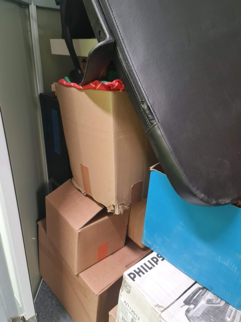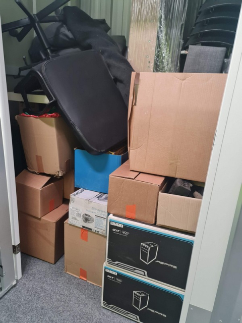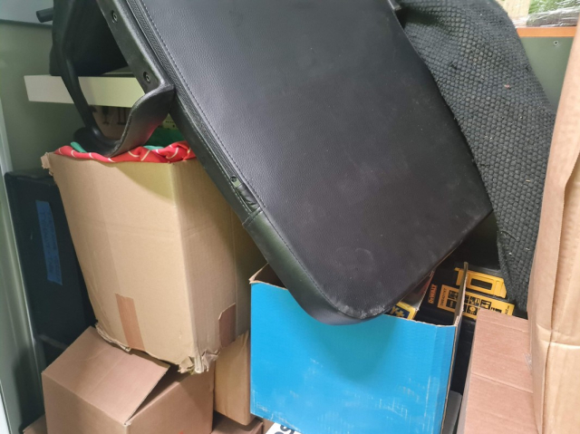 Myydään huutokaupalla kuvassa näkyvän varaston sisältö, vuokranantajan / haltijan lukuun.