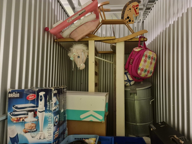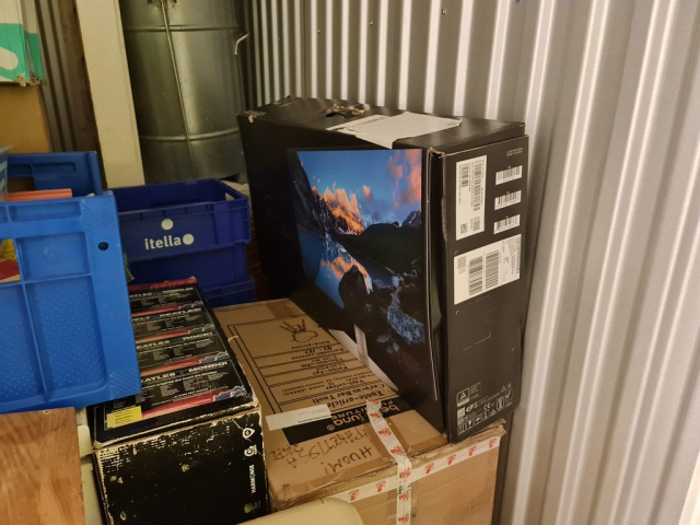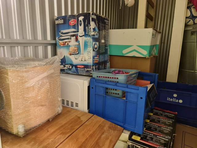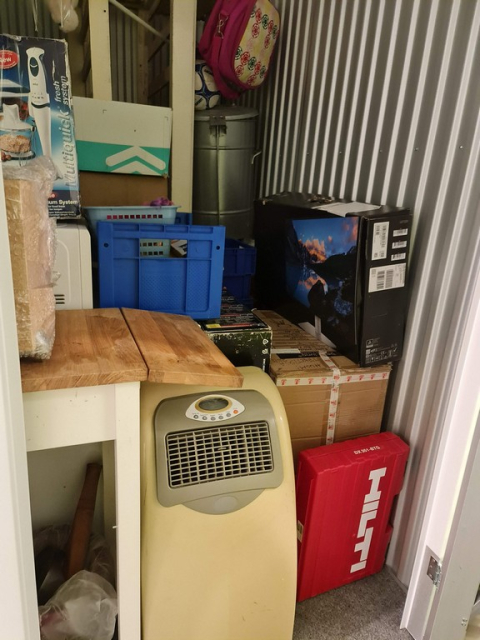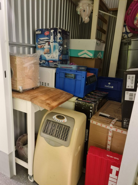 Myydään huutokaupalla kuvassa näkyvän varaston sisältö, vuokranantajan / haltijan lukuun.
