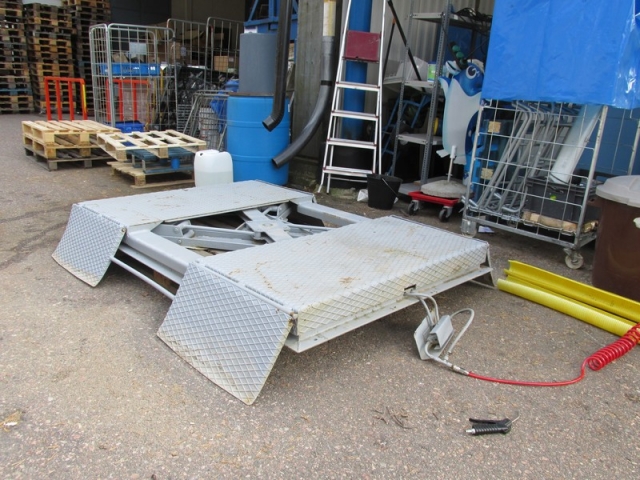 Kohde on kuvattu trukkilavan päällä, testattu siten että nostaa ja laskee, ei kuitenkaan kuorman kanssa.