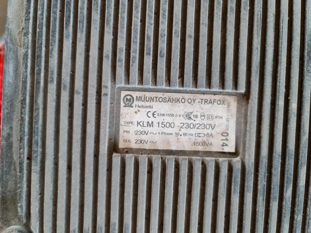 S-19 Suojaerotusmuuntaja 1500VA - KLM1500-230/48V, AP9+kytk.rima