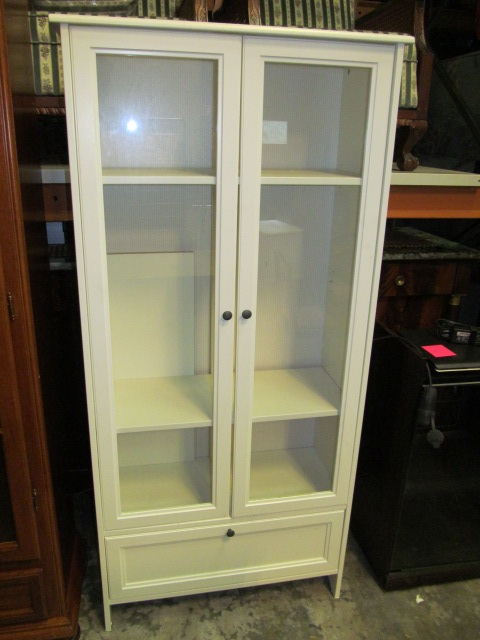 Valkoinen kaappi ( astiakaappi ), 166 x 79 x 34 cm (k x l x s)