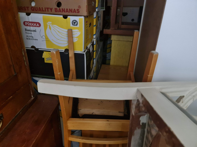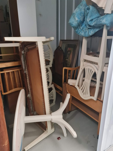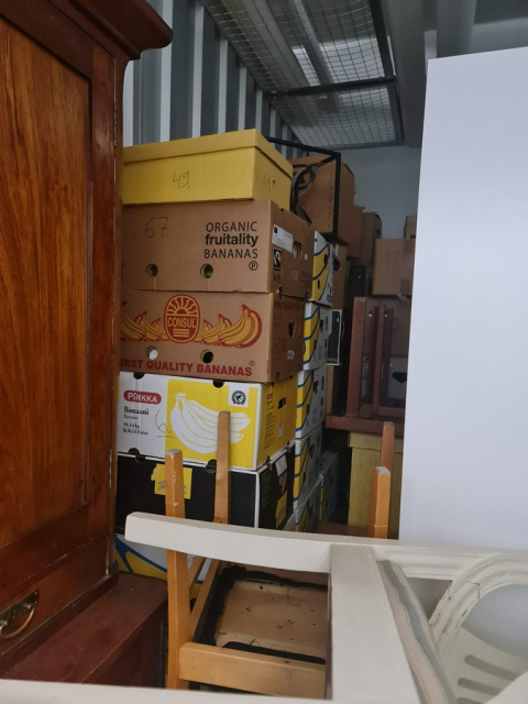 Myydään huutokaupalla kuvassa näkyvän varaston sisältö, vuokranantajan / haltijan lukuun.