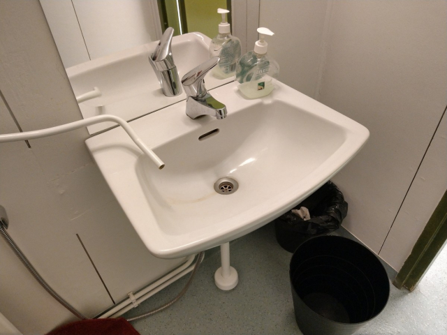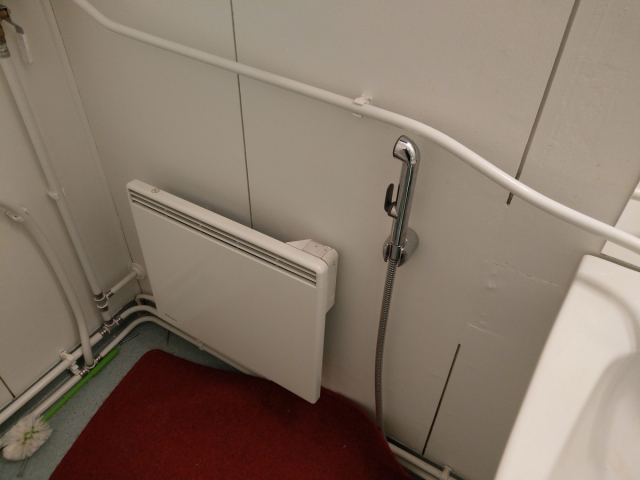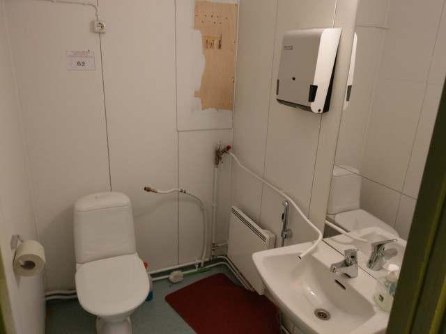 WC pönttö, allas ja hana, käsikuivaupaperin teline, patteri, peili (62)
